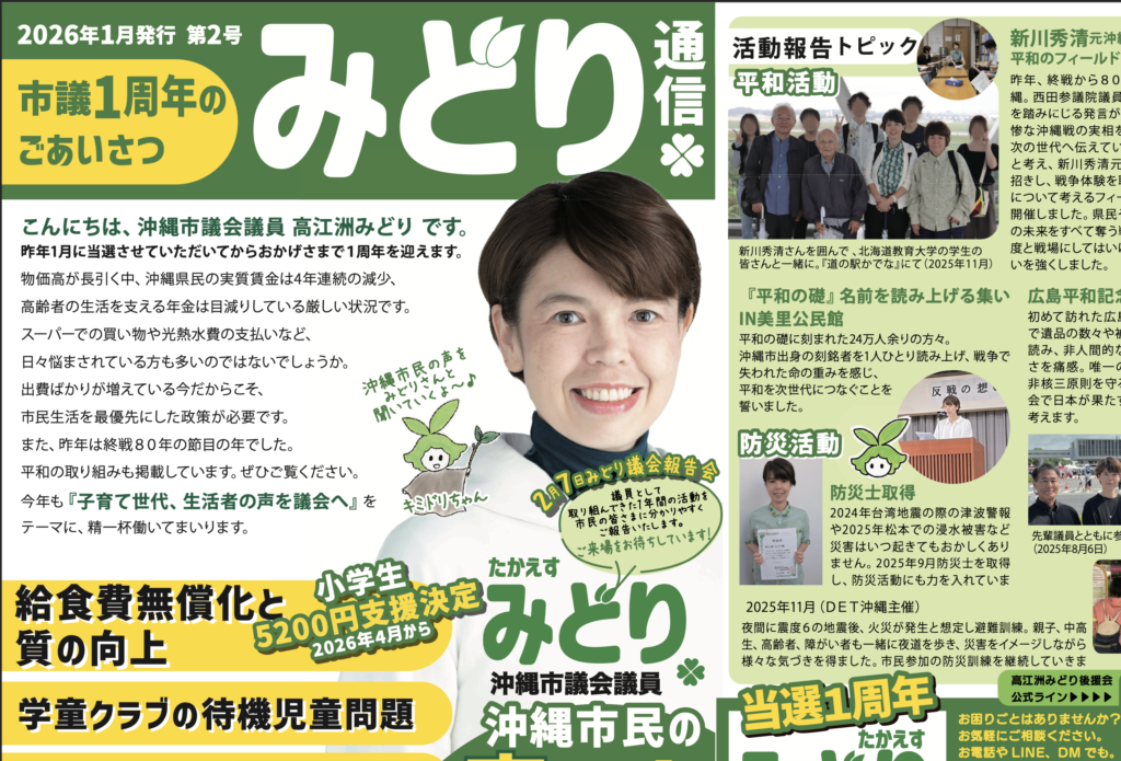 2025年1月 沖縄市議会銀補欠選挙にて当選を果たしました。 沖縄市議として 初登庁 「高江州みどり」が市議会の出来表に! 一般質問の順番決めは早いもの順だと聞…